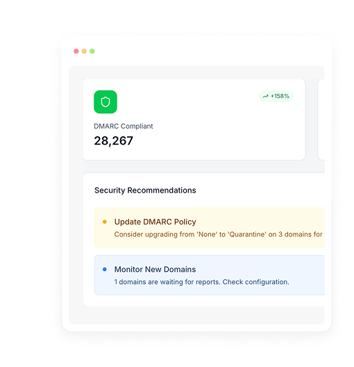 DMARCEye provides a focused solution for DMARC monitoring with AI-powered analysis.