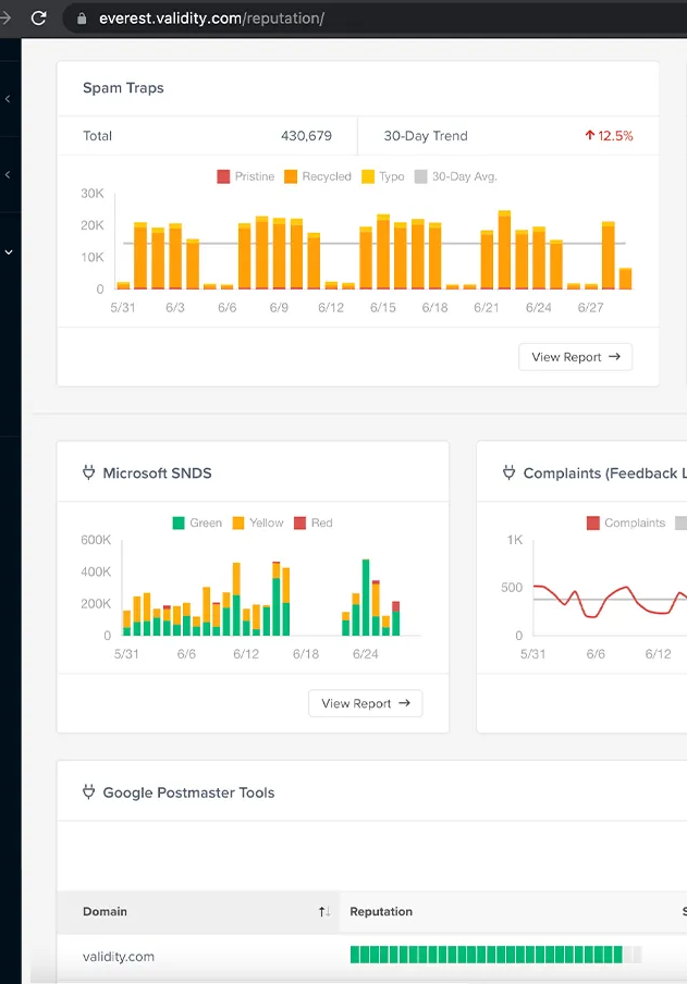 Monitoring email deliverability is of utmost importance to our business. Being able to see when things take a turn for the worse and being able to react quickly helps us keep our email reputation positive and keeps our emails in user's inboxes!
